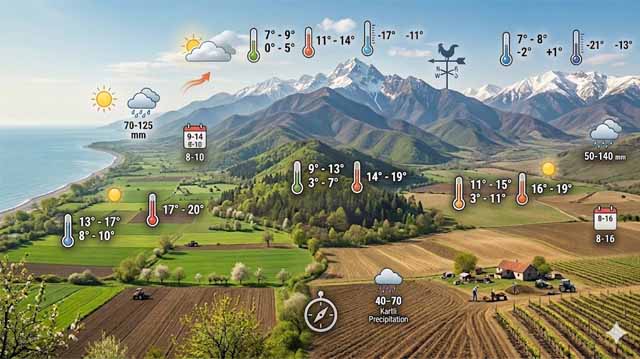 მონაცემები მოიცავს ჰაერის საშუალო, მაქსიმალურ და მინიმალურ ტემპერატურებს, ასევე ნალექების მოსალოდნელ რაოდენობას. ვფიქრობთ, ეს ინფორმაცია დაეხმარება ფერმერებსა და დაინტერესებულ პირებს მინდვრად საგაზაფხულო საქმიანობის სწორად დაგეგმვაში.